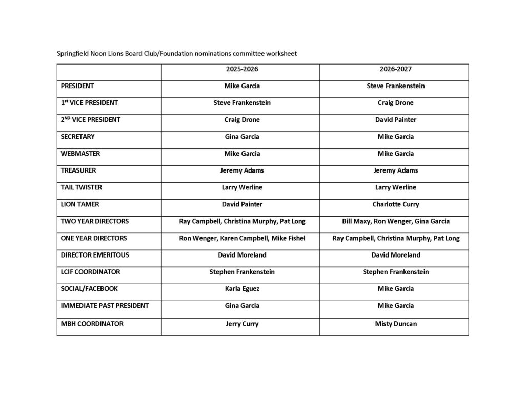 SPRINGFIELD NOON LIONS CLUB